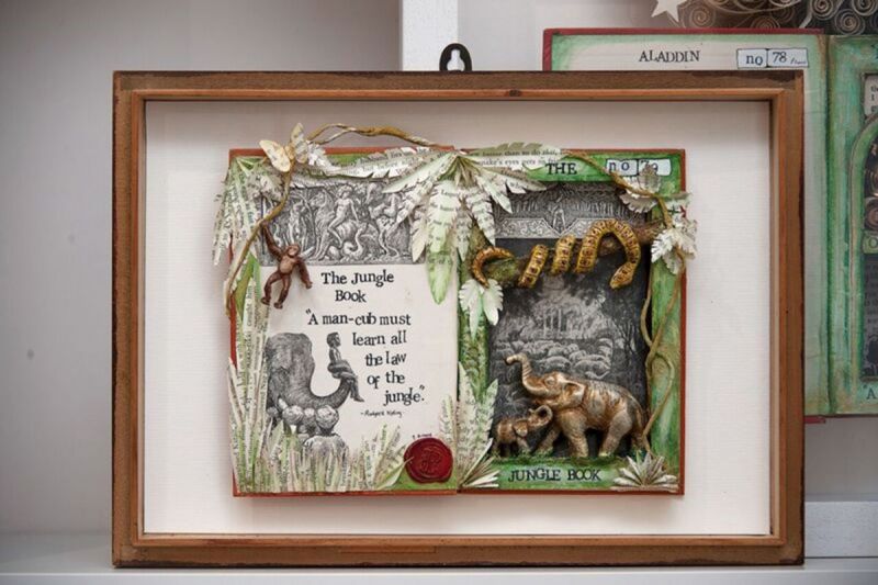 I have been working hard on a new collection of book sculptures to form my newest exhibition. These have been selected as part of the opening of a wonderful new gallery, The Ran Gallery, in Westbourne, Dorset. I have chosen to focus my collection on Fairy Tales and other classic stories. Each work portrays its original story through combining a reclaimed vintage book with found objects and hand-crafted paper structures. The exhibition is set to continue until the end of July. If your local to the area, or travelling down to visit one of the beautiful beaches Dorset has to offer, please pop along to take a look.